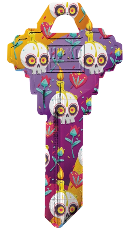 HY-KO Key Blank, Design/Theme: Skull, Brass, Dimensions: 1.07 in W x 0.09 in D x 2.1 in H, Suitable for: Schlage SC1 Keyways