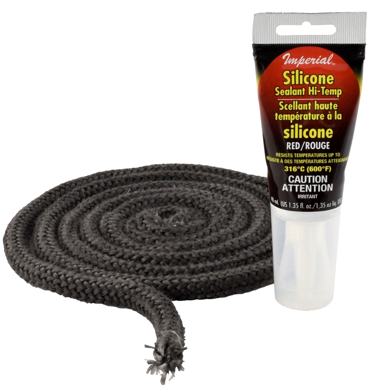 Imperial Gasket Rope Kit, 1/2 in, Black, Temperature Rating: 1000 deg F, Fiberglass, Suitable for: Airtight Stoves, Fireplace Inserts and Coal and Pellet Stoves, Includes: 40 mL Tube Of Silicone Sealant