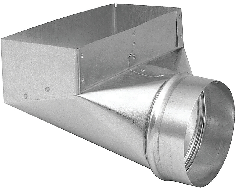 Used for right-angle transition from round pipe or insulated flexible duct to a register or grille.