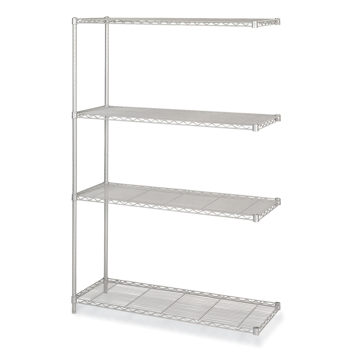 The Industrial Add-On Unit is an extra strength, welded wire construction storage shelf. The open wire shelves are perfect for office storage, promotes air circulation and reduces dust accumulation. The storage shelf is furnished with wire shelves that adjust in 1" increments, and includes four steel shelves, four posts and snap-together clips. Series Name: Safco Industrial Wire Shelving; Shelf Type: Adjustable; Shelf Depth: 18"; Shelf Capacity (Weight): 1,000 lbs.