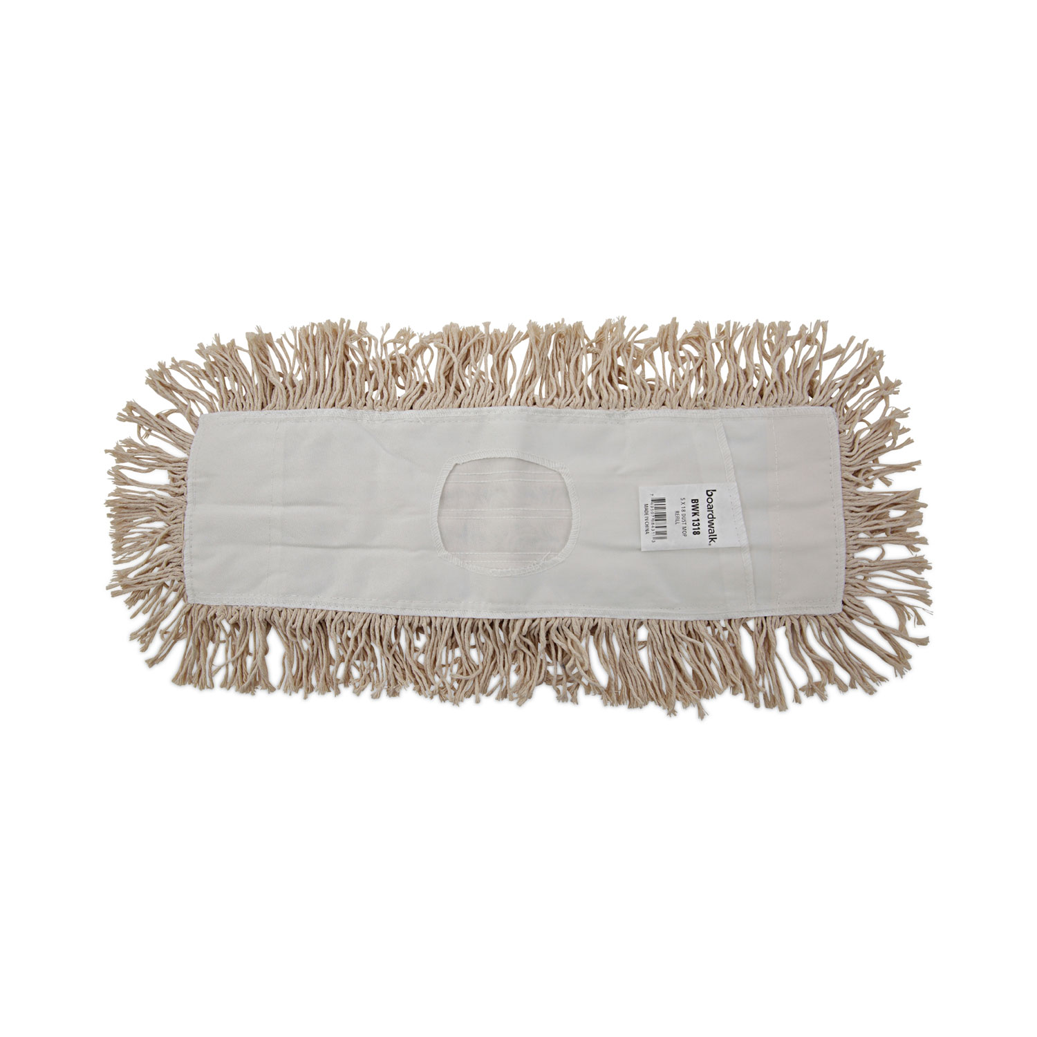 Ten-ply HyGrade cotton, cut-end design enhances durability while minimizing snags. Quick-drying, slot pocket style, synthetic backing. Head Type: Dust Mop; Application: Floors; Mop Head Style: Cut End; Mop Head Size: 18 x 5.