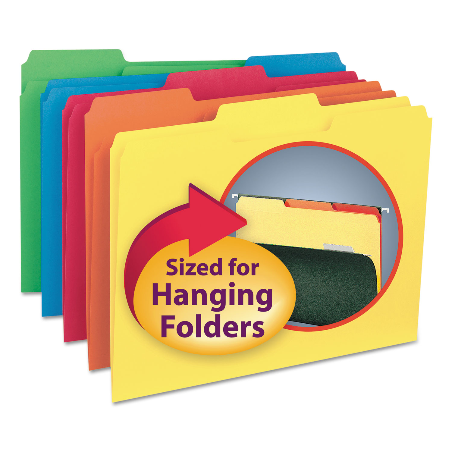 I love these file folders! I like that they fit inside the smead hanging folders and still be able to see the file folders. If you do a lot of project work these folders are for you. You can color code your interior file folder by project and since they stand up inside the hanging folder they are easy to get to. These folders have made my work a lot easier.