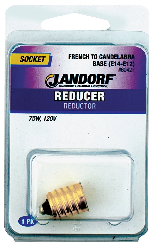 Jandorf Socket Reducer, 120 V, Wattage Rating: 75 W, Base Type: E14 French to E12 Candelabra, Brass, Gloss