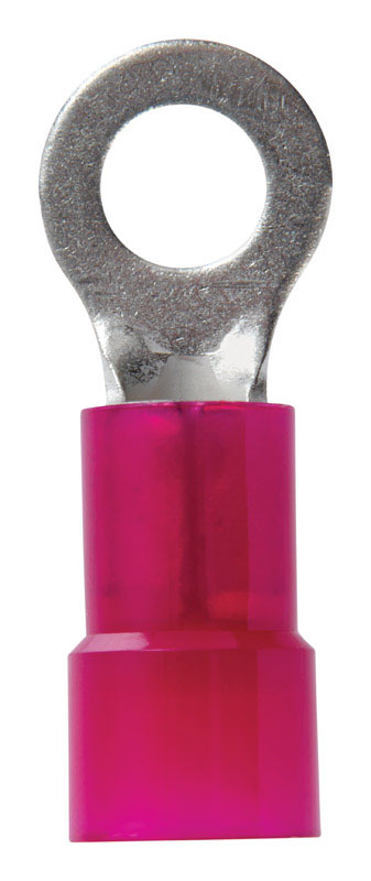 Jandorf Ring Terminal, 8 AWG, Nylon Insulation, Copper Contact, Contact Coating: Tin, Stud Size: 1/4 in, Red