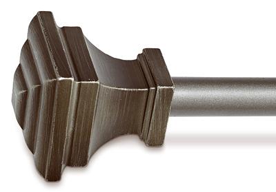 The 5/8 in Dia single curtain rod projects to 2.97 in and double curtain rod projects to 3.86 in. Steel rod with decorative resin finials and matching hardware. No drilling required, as easy as hanging picture frame.