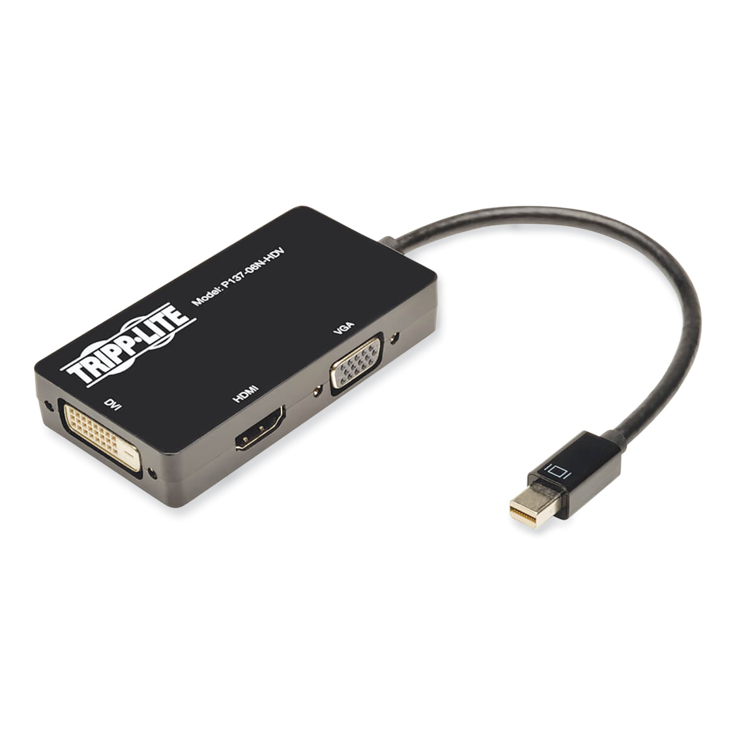 Allows you to convert your computer's Mini DisplayPort or Thunderbolt to a VGA, DVI, or HDMI monitor as an all-in-one, compact adapter. Ideal for Thunderbolt /Mini DisplayPort equipped laptops, Chromebooks, MacBooks and Microsoft Surface. Mac 10.11, Windows 10 Compatible. This passive, plug-and-play adapter requires no external power, drivers, or software, and supports video resolutions up to 1920 x 1200, or HD video resolutions up to 1920 x 1080 ( 1080p ). Supports up to 36-bit Deep Color (12 bits per channel). Cable Type: Displayport to VGA/HDMI/DVI Adapter; Connector/Port/Interface: Displayport; DVI; HDMI; VGA; For Device Type: Laptops; Mobile Devices; Connects Devices (From/To): Displayport to VGA, HDMI, DVI.