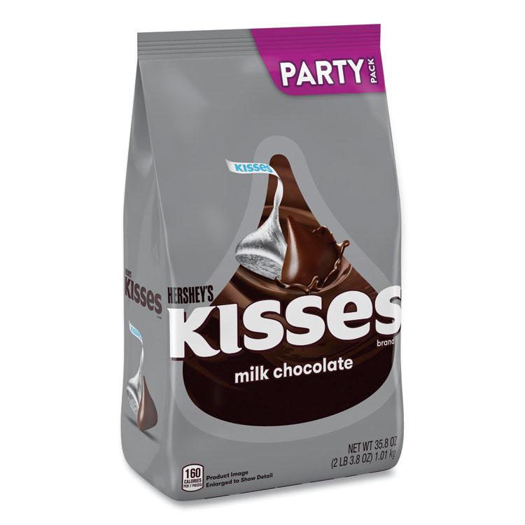 "Store chocolate in the home, classroom, or office with this shareable bag of milk chocolate. These individually portioned and wrapped milk chocolate candies make snacking simple on-the-go. The instantly recognizable shape and taste make these a nostalgic treat. Party Pack Silver Wrappers. Food Type: Candy Bars; Flavor: Milk Chocolate; Capacity (Weight): 35.8 oz; Sugar Free: No."