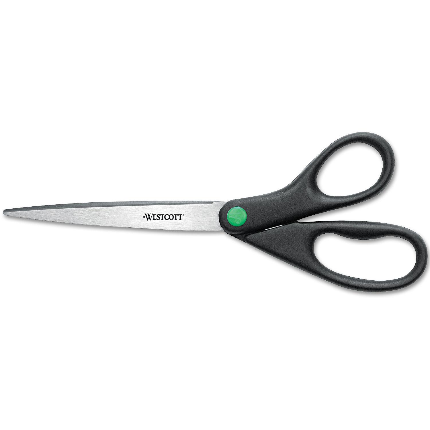 Feature stainless steel blades. These lightweight scissors are capable of cleanly cutting through a wide range of materials. Made for both right or left hand use. Cutting Tool Style: General Purpose; Tip Type: Pointed; Cut Length: 3.75"; Overall Length: 9".