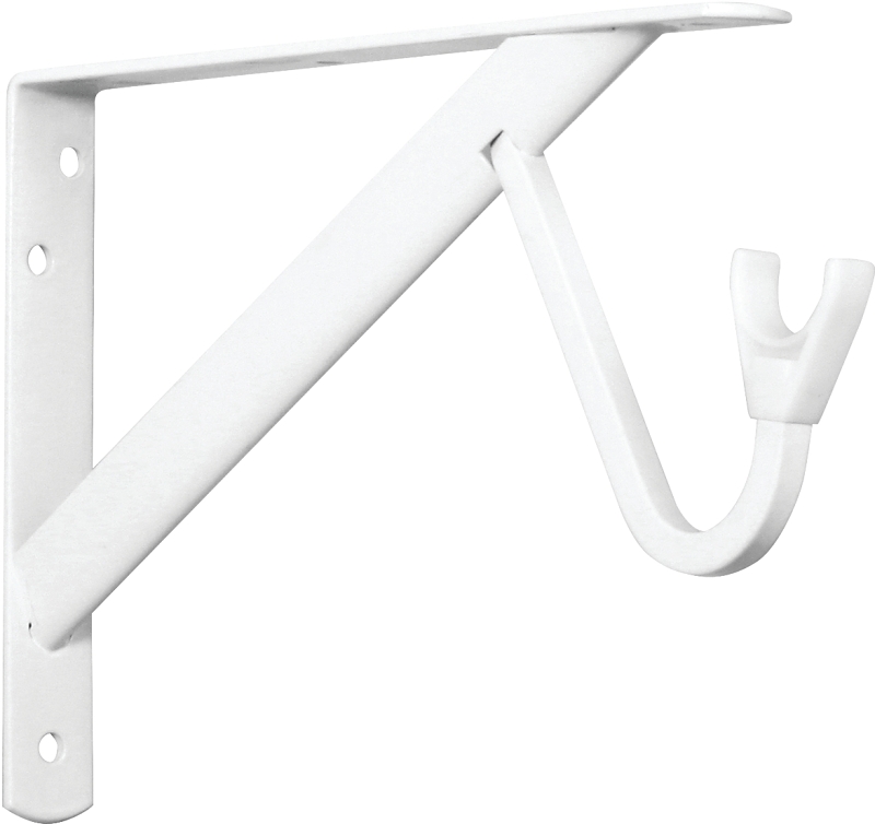 Shelf & rod bracket holds up to 1000 lb per pair. Poles simply snap into place, no screws required. The slide-thru feature lets hangers glide along the pole without obstruction. White finish.