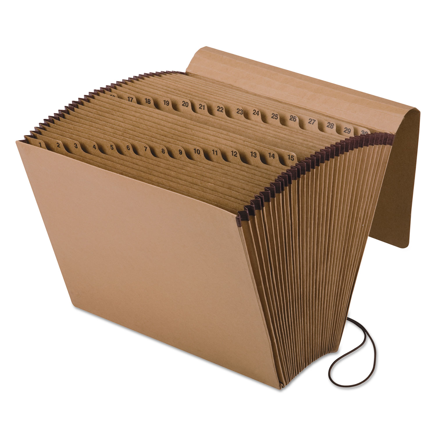 Protect vital documents with this durable, long-lasting expandable file. Double thick front and back panels stand up to active use. Gusset tops are reinforced with rip-proof tape. Preprinted dividers. Elastic cord closure. Pocket/Wallet Type: Files/Papers; Size: Letter; Closure Type: Elastic Cord; Color(s): Brown.