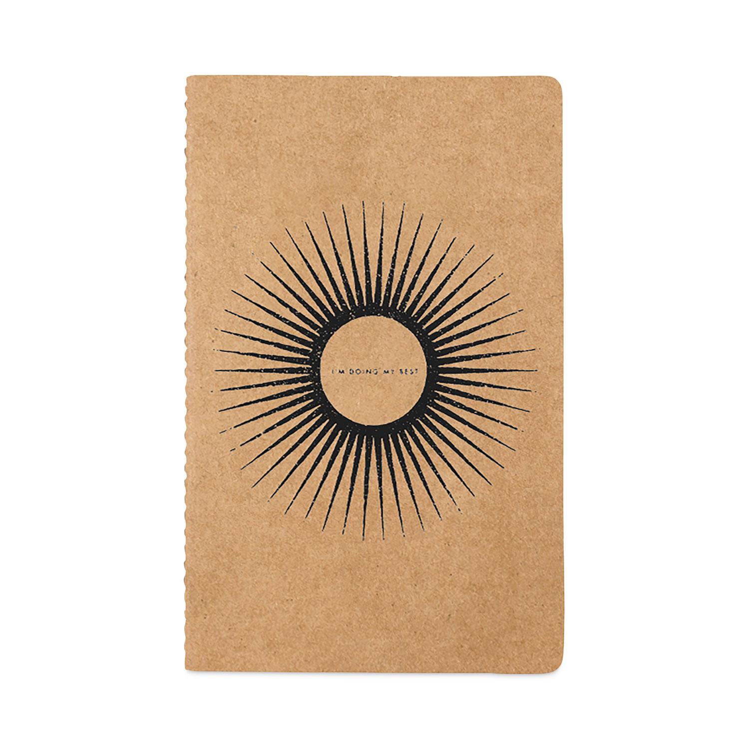 Attractive enough to complement any modern desktop, durable enough to survive a hard day on the trail. Unique layflat design with smyth-sewn, library-quality, casebound binding ensures that the book lays completely flat when open, eliminating the possibility of ever feeling as though you're writing up-hill on the left-hand page or down-hill on the right-hand page. Its beautiful soft cover features rounded corners and all-original, nature-themed artwork that fits right in, whether you're in the classroom or on the nature trail! Each notebook is made entirely of recycled kraft stock, inside and out. Black Printed Artwork"I'm Doing My Best" Native Sun design helps inspire a sunny disposition while you put your best foot forward. Pocket-Sized Indicator: Y; Book-Binding Type: Sewn; Book-Binding Details: Casebound: Soft Cover; Book-Binding Edge: Side.