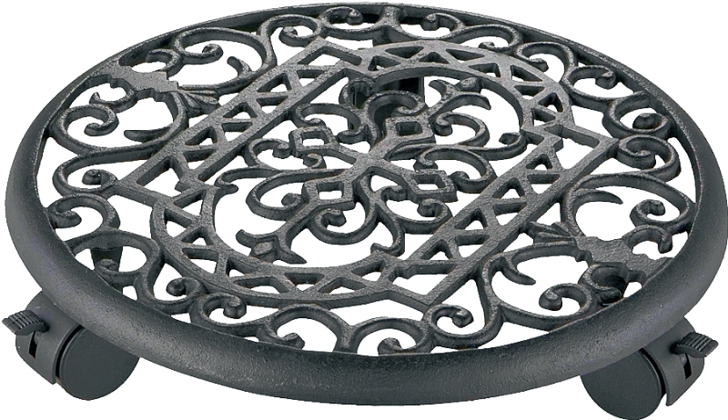 Cast iron stand with three casters. Dimension of 2-7/8 in H x 12-7/8 in Dia. Weight capacity of 100 lb.