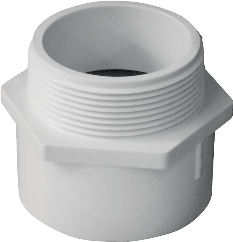 LASCO Male Adapter, Nominal Size: 2 in, MPT x Slip Connection, 280 psi, Operating Temperature: 73 to 140 deg F, Schedule Rating: SCH 40, PVC, White, 2-11/16 in L