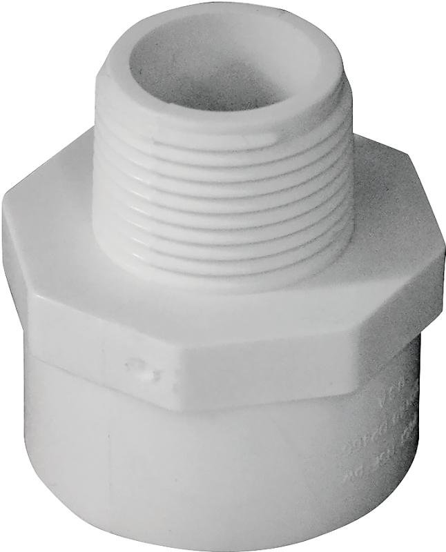 LASCO Reducing Male Adapter, Nominal Size: 3/4 x 1 in, MPT x Slip Connection, 270 psi, Operating Temperature: 73 to 140 deg F, Schedule Rating: SCH 40, PVC, White, 1-13/16 in L