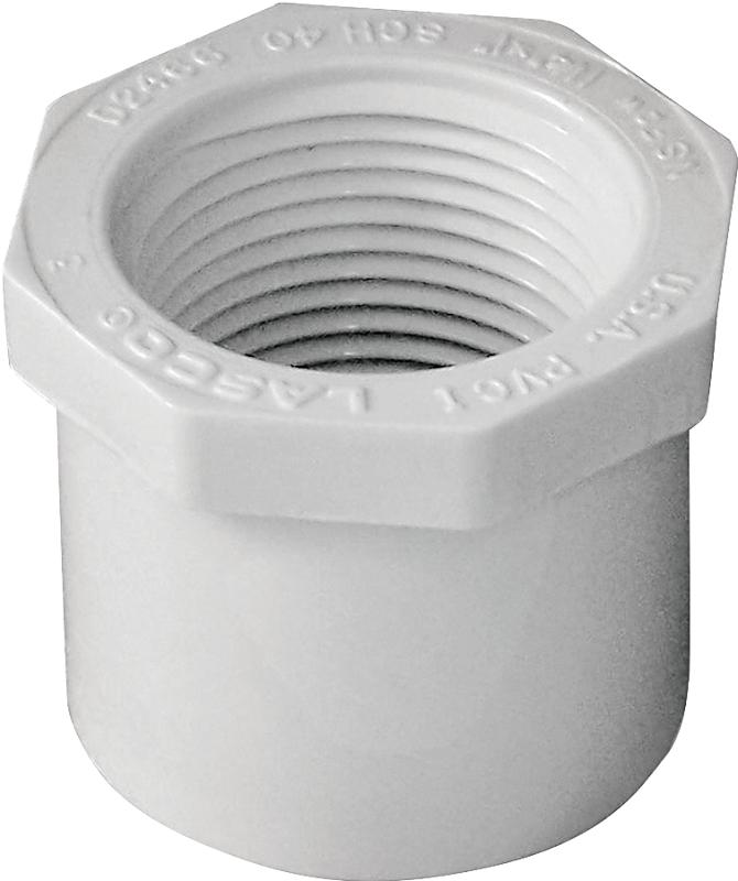 LASCO Reducing Bush, Nominal Size: 1-1/4 x 1 in, Spigot x FNPT Connection, Operating Temperature: 140 deg F, Schedule Rating: SCH 40, PVC, White