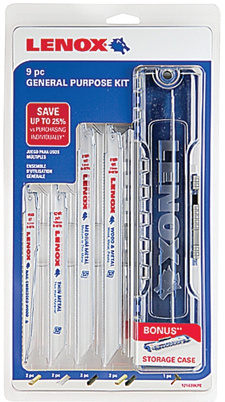 Tooth design delivers longer blade life and enables faster cutting in the widest array of cutting applications. Shatter resistant, bi-metal design provides flexibility and durability. Includes (2) 656R, 624R, 818R, 810R and one 960R. Comes with convenient storage case.
