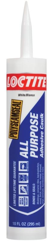 Loctite POLYSEAMSEAL Caulk all-purpose adhesive caulk is a premium-grade water-based caulk designed to have the strength of an adhesive and the sealing characteristics of a caulk. POLYSEAMSEAL all-purpose bonds to most indoor surfaces including wood, concrete, metal, ceramic, drywall, plaster and some plastics. Easy to apply and tool. Environmentally safe, soap and water cleanup. Contains no silicone. Cured product is water resistant, mold and mildew-resistant and paintable.