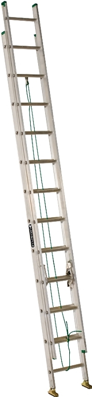 This Louisville 16 ft aluminum extension ladder has a 225 lb load capacity, rated ANSI type II. It is equipped with the maxlock rung lock, custom engineered from a patented, advanced molecular polymer, maxlock is the strongest, toughest, lightest rung lock ever made. This ladder also includes the patented progrip slip-resistant tread integrated onto the ladder caps to protect the work surface from damage. Quicklatch runglock system that provides a simple, intuitive method of securing the fly and base sections of the ladder when extended. This ladder also features outside slide guides, D-shape rungs fully serrated for a slip-resistant surface, modified I-beam for a more stable connection and to prevent twisting and swivel safety shoes to be used as tread down or in-spike position.