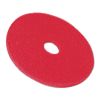 3M Red Buffer Pads 5100 can be used for everyday cleaning, remove light soil, scuff marks and black heel marks. Its regular use reduces the frequency of scrub-and-recoat operations, enhancing the appearance of your finished floors with reduced labor and materials costs. Fibers throughout the pad are uniformly coated with a high-quality resin and fine cleaning particles, providing good performance throughout the pad's long life. Open-web construction means this washable, reusable pad resists clogging and loading. Conformable fibers provide maximum pad-to-floor contact. Pads are reversible. For rotary swing machines and automatic floor machines running at low speed (175-600 rpm). Application: Buffing; Diameter: 20"; Height: 1"; Color(s): Red.