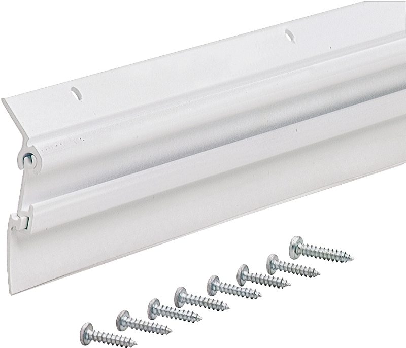 As the door opens, the spring action door sweep automatically raises to clear the carpet. When the door is closed, the door sweep automatically lowers to firmly press against floor or carpet.