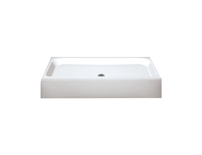 Integral tiling flange, center drain, ideal base for wall surround or ceramic wall applications. White. 5 years warranty. Glossy white gelcoat finish.