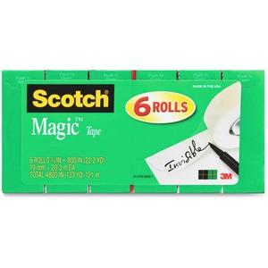 Scotch Magic Tape works as hard as you do to fix all the little imperfections at home, school and the office. The Scotch Brand's famous matte-finish invisible tape uses unique 3M adhesive technology to bond tightly with paper and disappear without a trace. Write on it with pencil, pen or markerevery word is loud and clear. Scotch Magic Tape: Always ready for big ideas and everyday mends. Core Size: 1"; Dispenser Included: No; Backing Material: Plastic; Width: 0.75".