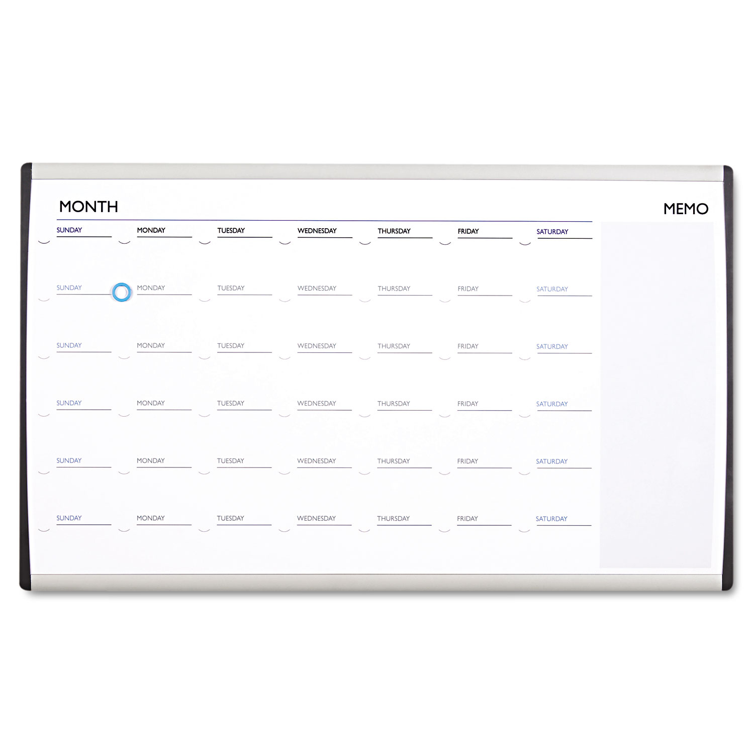 Durable, high-quality board helps delivers quality planning and organizing performance in personal workstations. The stylish aluminum finish frame compliments any contemporary cubicle decor. Flexible mounting system secures dry-wall and hangs with pins for cubicle mounts. One Month Magnetic Dry Erase Planning BoardPlan your monthly itinerary more efficiently. Surface doubles as bulletin board. Board Type: Magnetic Dry Erase Calendar; Board Width: 30"; Board Height: 18"; Surface Material: Painted Steel.