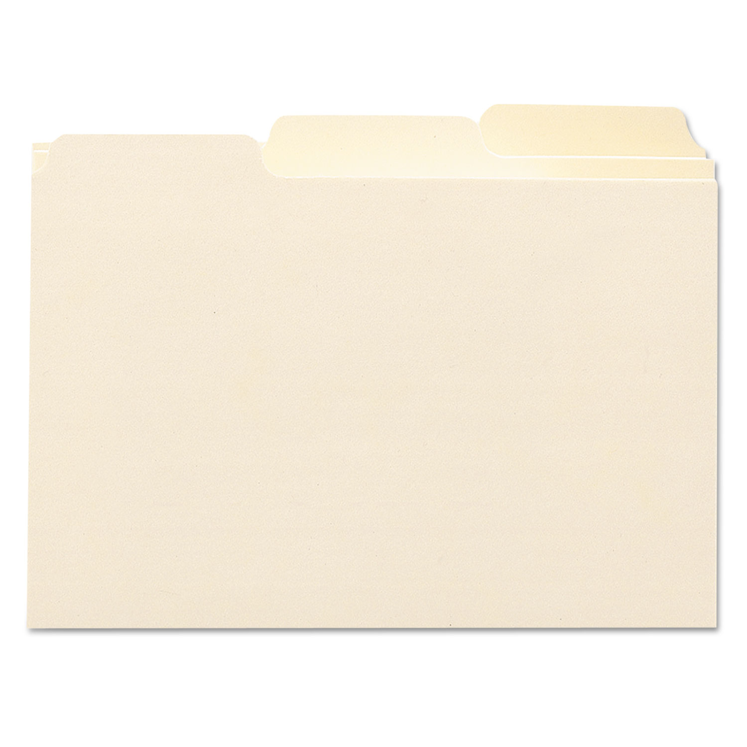 Ideal for organizing desktop reference files, account lists, patient or customer lists. Made of heavyweight manila stock for extra durability. Guide Size: 4 x 6; Tab Type: Top Tab; Tab Cut: 1/3-Cut; Tab Position: Assorted.