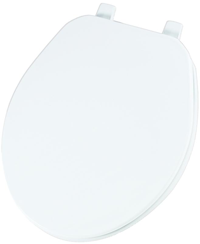 Economy plastic seat. Top-Tite hinges for easy installation. Solid, molded-in color resists chips, wear and stains. Fits all manufacturer's round bowls. May be used in commercial applications. Made in USA.