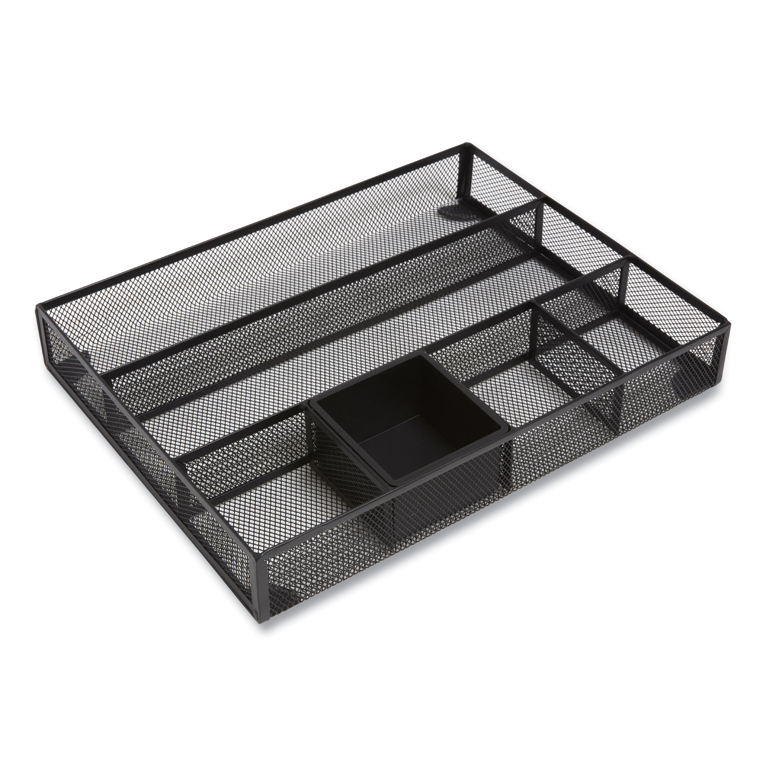 Organizational tool to keep desk or drawer space tidy and supplies within reach. Multiple compartment options and sizes proactively guiding users to organize their supplies by size. Tightly woven mesh design with flat square-rounded edges delivers a modern look. Compartments: 6; Height: 2.68"; Width: 15.43"; Depth: 12.2".