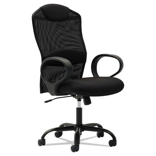 Mesh High-Back Task Chair, Fixed Loop Arms, Black