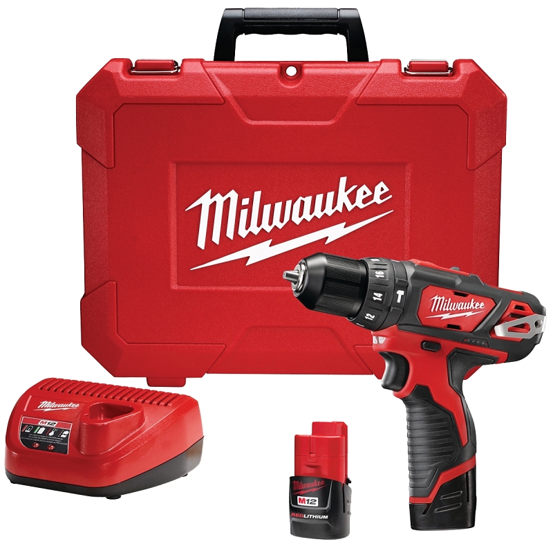 The industry's first subcompact hammer drill/driver delivers best-in-class power, speed and durability. For contractors, maintenance technicians, remodelers or anyone who's seeking portability and performance, the compact and lightweight M12 cordless hammer drill/driver gets the job done. It delivers best-in-class 275 in-lb of torque and 0 to 400, 0 to 1500 rpm with the REDLITHIUM 12 V battery. The all-metal single-sleeve ratcheting chuck offers great bit grip, so you won't have to stop for bit re-tightening or lost bits. An onboard fuel gauge and built-in LED light offer convenience and minimize interruptions, even during prolonged use. The REDLITHIUM battery pack delivers more work per charge and more work over pack life than the competitors. The kit includes two M12 REDLITHIUM batteries, a 30 mins charger and carrying case.