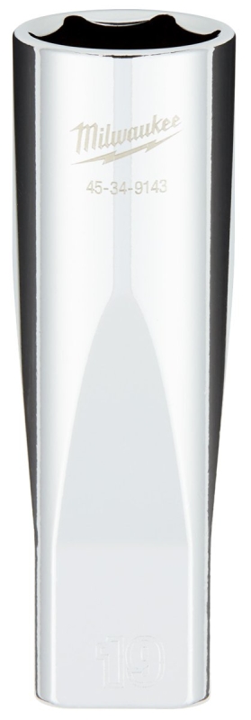 Milwaukee 45-34-9143 Socket, 19 mm Socket, 1/2 in Drive, 6-Point, Chrome Vanadium Steel, Chrome