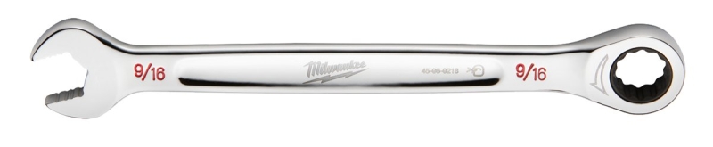 Milwaukee 45-96-9218 Ratcheting Combination Wrench, SAE, 9/16 in Head, 7.8 in L, 12-Point, Steel, Ch