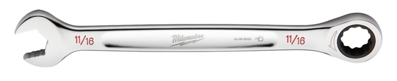 Milwaukee 45-96-9222 Ratcheting Combination Wrench, SAE, 11/16 in Head, 9.19 in L, 12-Point, Steel,