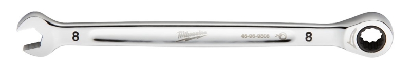 Milwaukee 45-96-9308 Ratcheting Combination Wrench, Metric, 8 mm Head, 5-3/4 in L, 12-Point, Steel,