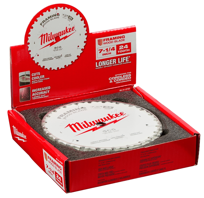Milwaukee's wood cutting, framing blades maximize life and cutting efficiencies to improve your productivity. An anti-friction coating keeps the blade cool while cutting and resists corrosion and gumming. Laser cutting technology creates the blade from 100% sheet steel to ensure a stable blade that increases cutting accuracy. Laser cut vibration slots minimize wobble and warping during use. A thin kerf design delivers faster cuts as well as more cuts per charge when using a cordless tool.
