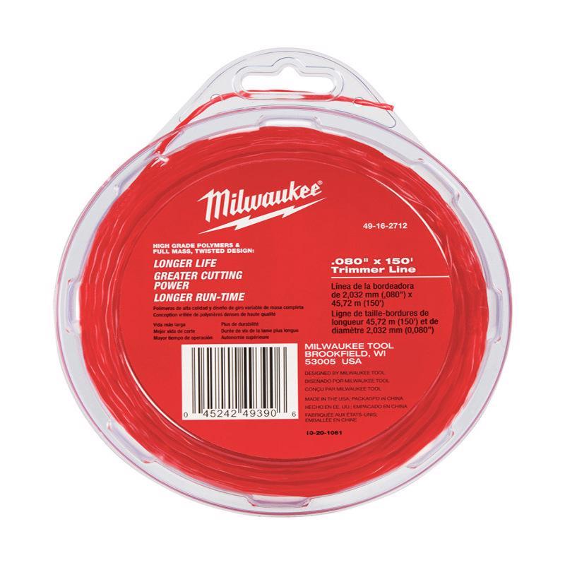 The Milwaukee 0.080 in string trimmer line utilizes high-grade polymers and a full mass, twisted design to provide longer life, greater cutting power and longer run-time.