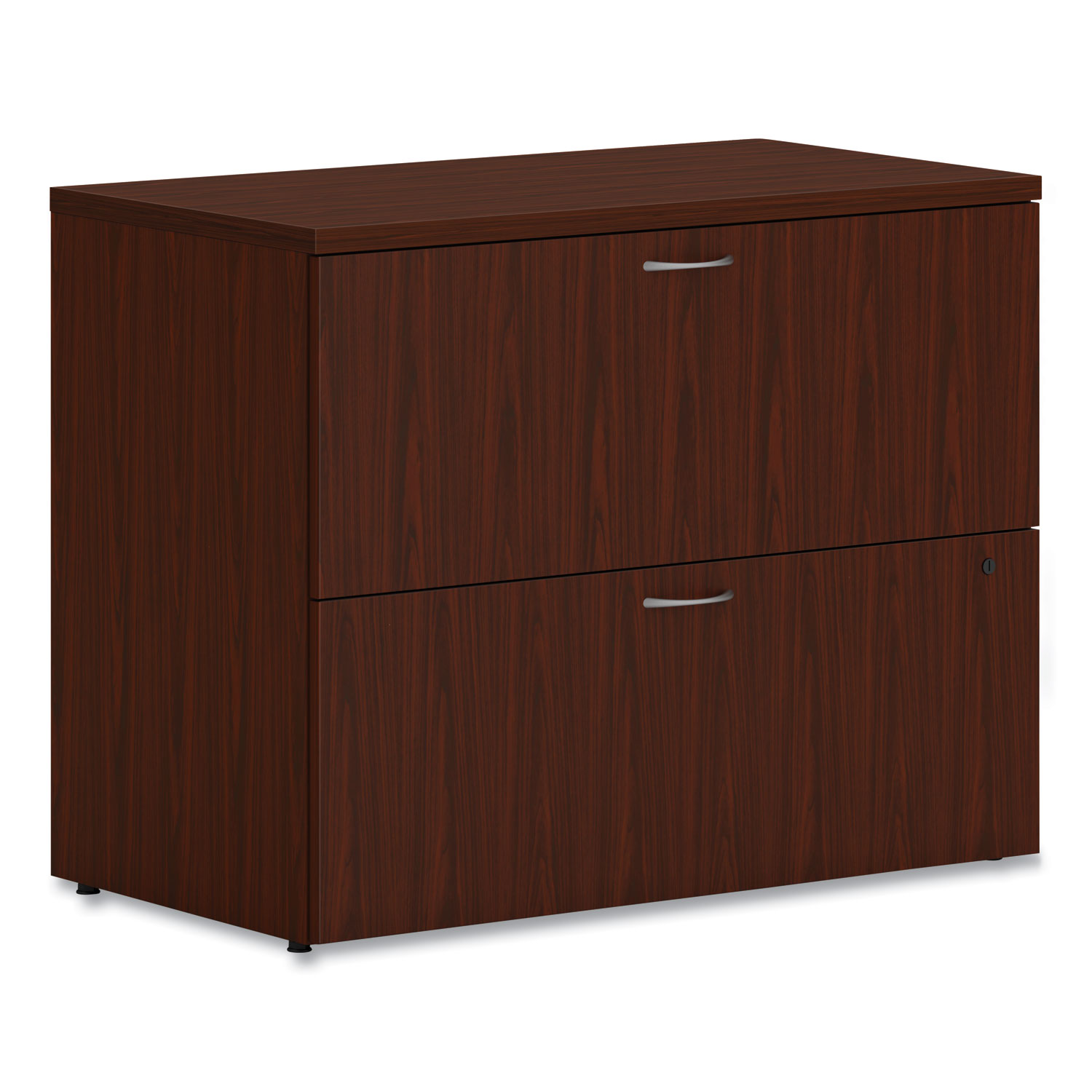 Lateral file accommodates the largest volume of filing in an efficient format that saves floorspace. Fully assembled and ready to use. Steel ball-bearing drawer suspensions operate easily and quietly. Drawers are equipped with standard hangrails to hold either letter- or legal-width hanging files. Drawers open fully to give easy access to all contents. File folders are arranged side-to-side to take up less aisle space when drawers are opened. Drawer Quantity: 2; Drawer Configuration: File; Anti-Tip Mechanism Indicator: No; Color: Traditional Mahogany.