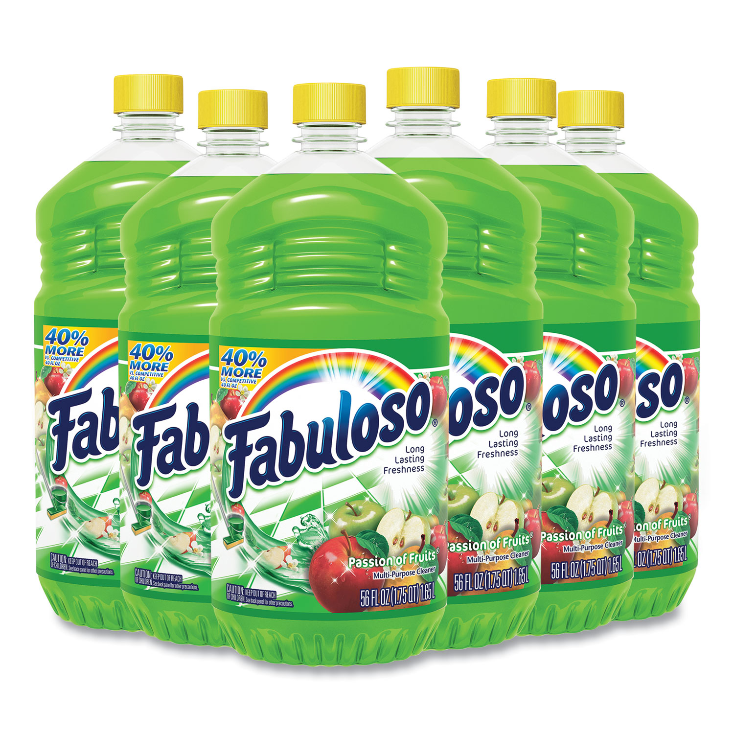 Fabuloso Multi-Purpose Cleaner leaves a fresh scent that lasts. The fragrance leaves an irresistible scent your family and guests will notice. It comes in a convenient, easy-pour bottle. This Fabuloso cleaner is easy to use, so there is no need to rinse, and it leaves no visible residue. Application: All-Purpose; Bathrooms; Kitchen; Applicable Material: Ceramic; Fiberglass; Glass; Metal; Plastic; Vinyl; Hard Surfaces; Dirt Types: Dust; Grease; Grime; Soil; Scent: Passion Fruit.