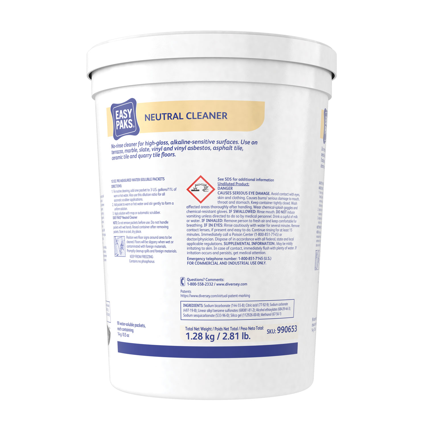 Bring back the shine to your high-gloss floorswithout having to worry about harming them in the process. Formula loosens and removes soil found in high-traffic areas, while protecting high-gloss, high solids finishes. Plus, the formula is phosphate-free and leaves no dulling filmwithout the need for rinsing. The premeasured packs of cleaning solution quickly dissolve in water, allowing you to start cleaning immediately. Ideal for cleaning surfaces ranging from terrazzo, marble, slate, vinyl and vinyl asbestos, asphalt, ceramic and quarry tile. 90 Packets per Tub. Application: Floor Cleaner/Degreaser; Applicable Material: Vinyl Composition Tile (VCT); Solid Vinyl Tile (SVT); Linoleum; Sheet Vinyl; Laminates; Sealed/Finished Wood; Glass; Sealed Cement/Concrete; Ceramic Tile; Terra Cotta; Quarry Tile; Dirt Types: Dust; Food Residue; Grease; Grime; Scuff Marks; Soil; Spills; Scent: Pine Forest.