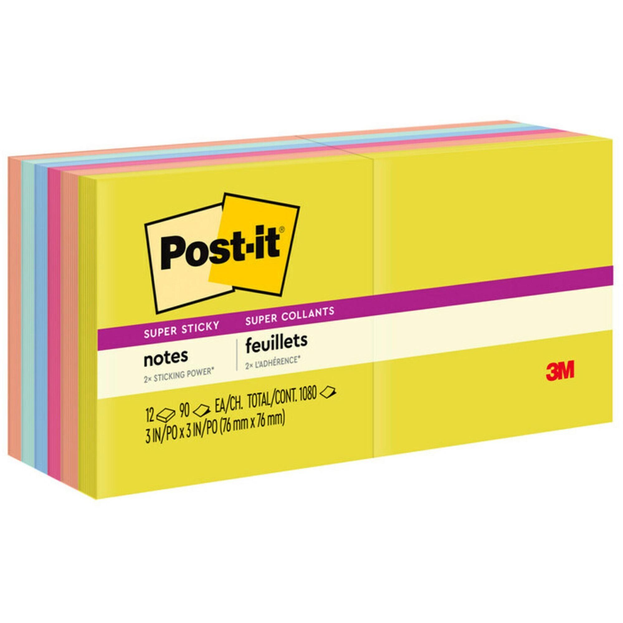 Summer colors at their most warm and invitingcapture happy memories that will last all year. Super Sticky adhesive provides twice the sticking power, yet always ensures that your notes will remove cleanly, no matter where you place them. Stick and re-stick to just about any flat surface: doors, windows, mirrors, walls and more to make sure your thoughts get noticed. If working or learning remotely, be sure to download the free Post-it App to leverage the app's features to help you capture ideas, track tasks, create colorful calendars and more. The app also allows you to share everything between your sync'd devices as well as across a wide variety of platforms: Dropbox, Trello, PowerPoint and more. Pad Type: Super-Sticky; Shape: Square; Color(s): Summer Joy Collection; Color Family: Multicolor.