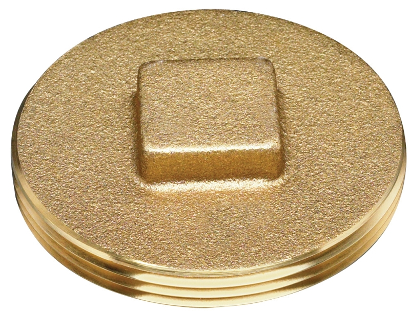 Brass cleanout plug with raised square head for use with slip joint pliers.