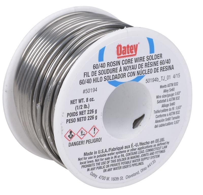 Oatey rosin core wire solder is a tin-lead alloy wire solder with a rosin flux core for use in electrical applications, including wiring and other fine electronic work.