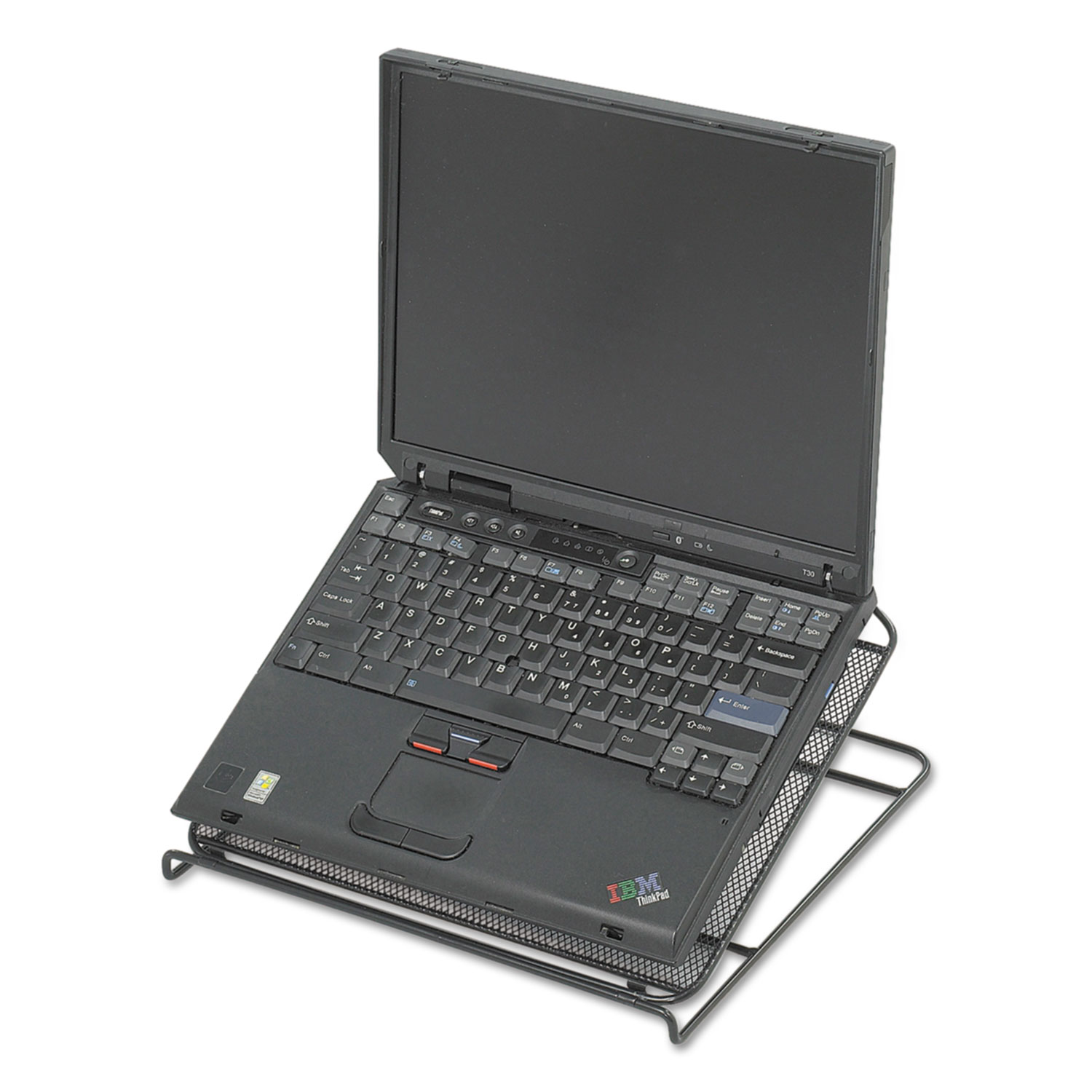 Adjustable stand positions laptop at personalized viewing levels, reducing glare and eye fatigue. Unique design allows unit to fold flat for portability. Durable steel mesh construction provides strength and stability while blending into any workspace dcor. OEM/Compatible: Compatible; Workstation Type: Mobile Workstation; Traditional Desk/Table; Series Name: Safco Onyx; Width: 12.25".