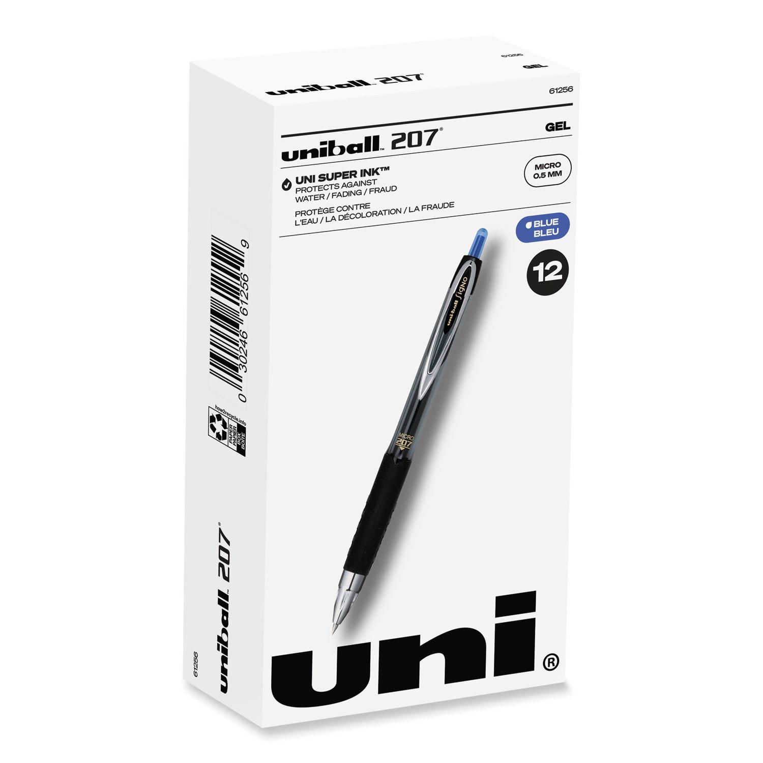 Signo Gel 207 Roller Ball Retractable Gel Pen, Blue Ink, Micro Fine, Dozen
