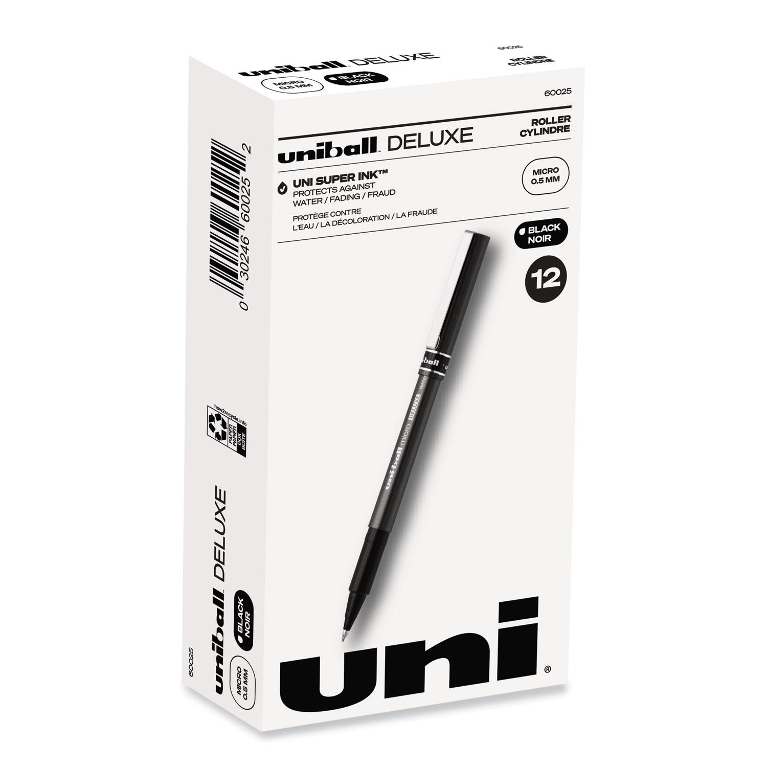 Deluxe Roller Ball Stick Waterproof Pen, Black Ink, Micro, Dozen