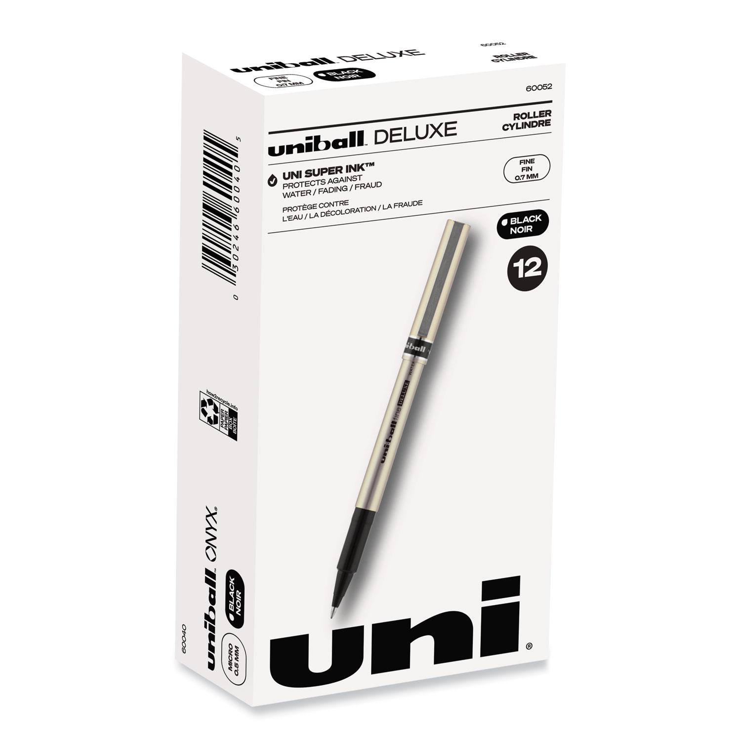Deluxe Roller Ball Stick Waterproof Pen, Black Ink, Fine, Dozen