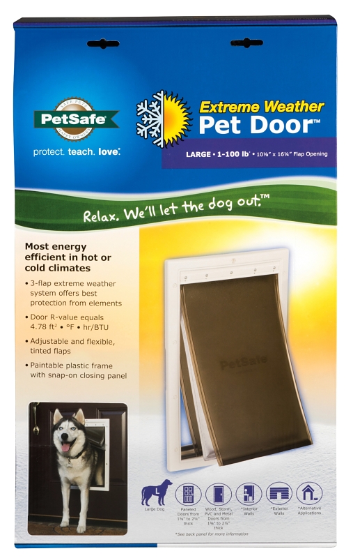 PetSafe Pet Door, White, Flap Opening Size: 10-1/8 x 15-3/4 in, Frame Dimensions: 12-5/8 x 20 in, Includes: (3) Flaps, Mounting Hardware, Hole Template, Owners Manual