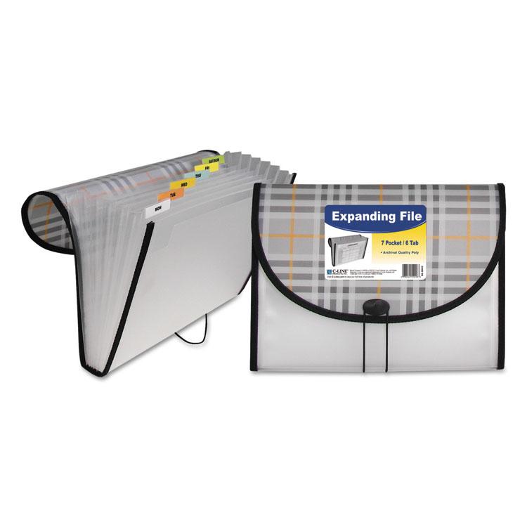 Expanding file is great for carrying documents or storage. Plaid design expanding files are made of durable acid-free polypropylene. Keeps papers organized and protected. Features stitched edges and a button-elastic closure. These expanding files are a great choice for your organizational needs. Includes preprinted tab inserts. Pocket/Wallet Type: Files/Papers; Size: Letter; Overall Expansion: 1.5"; Closure Type: Elastic Cord.